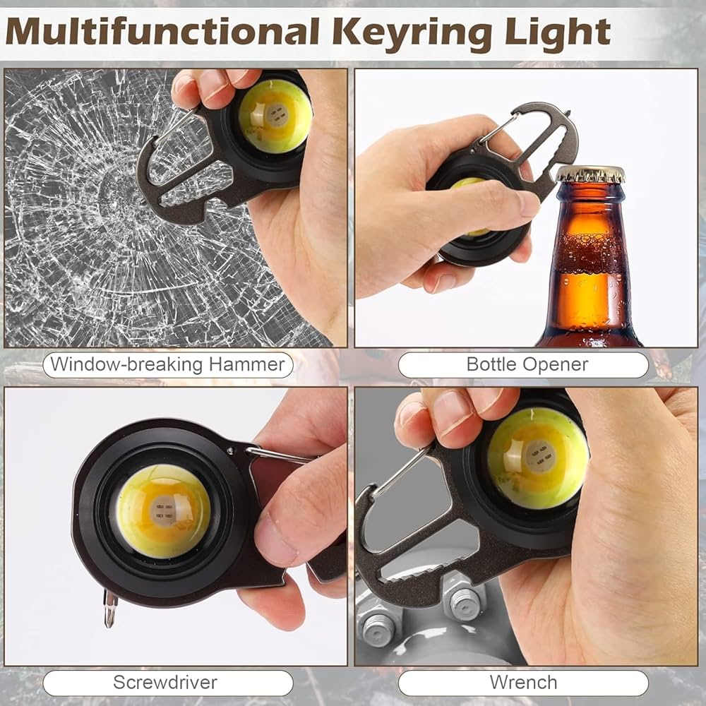 A compact, all-in-one keyring tool combining everyday essentials like a bottle opener, screwdriver, wrench, and a bright COB light. Designed with practicality in mind, this gadget ensures you're prepared wherever you go.