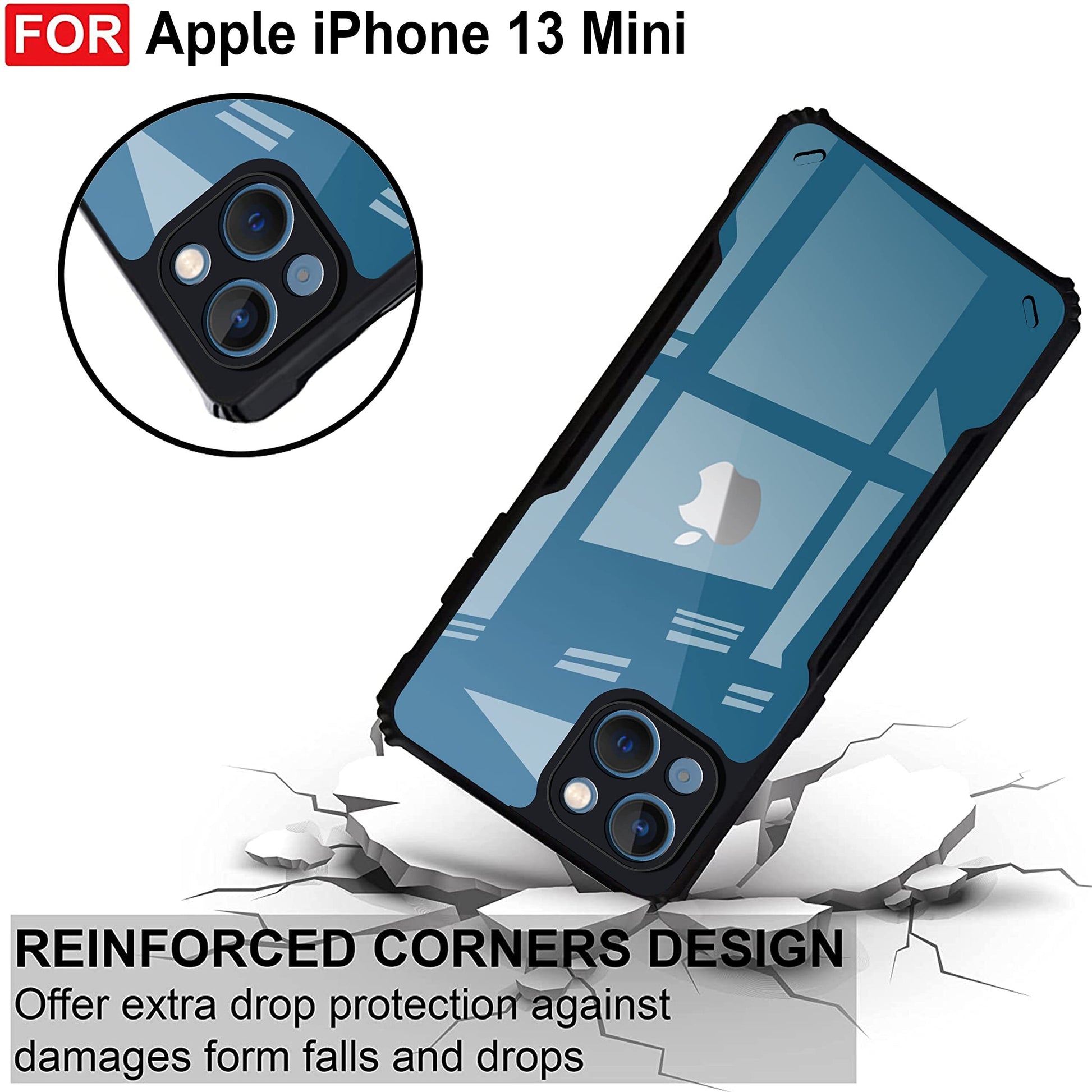 VAKIBO Best Selling Black and Transparent Back Cover Case Made With Soft TPU and Acrylic With 4 Corner and Camera Protection Suitable for Apple iPhone 13 Mini