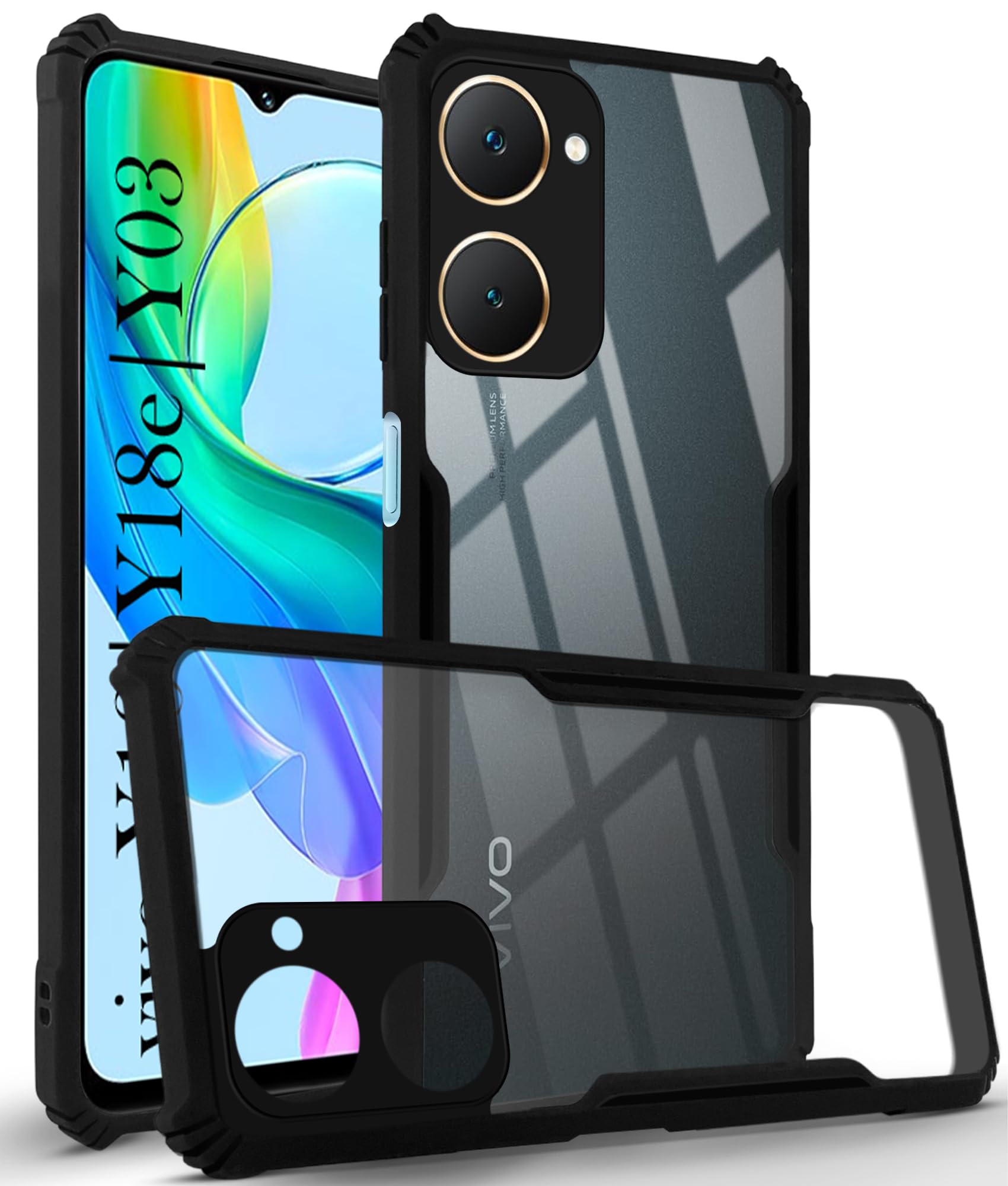 VAKIBO Best Selling Black and Transparent Back Cover Case Made With Soft TPU and Acrylic With 4 Corner and Camera Protection Suitable for Vivo Y18e
