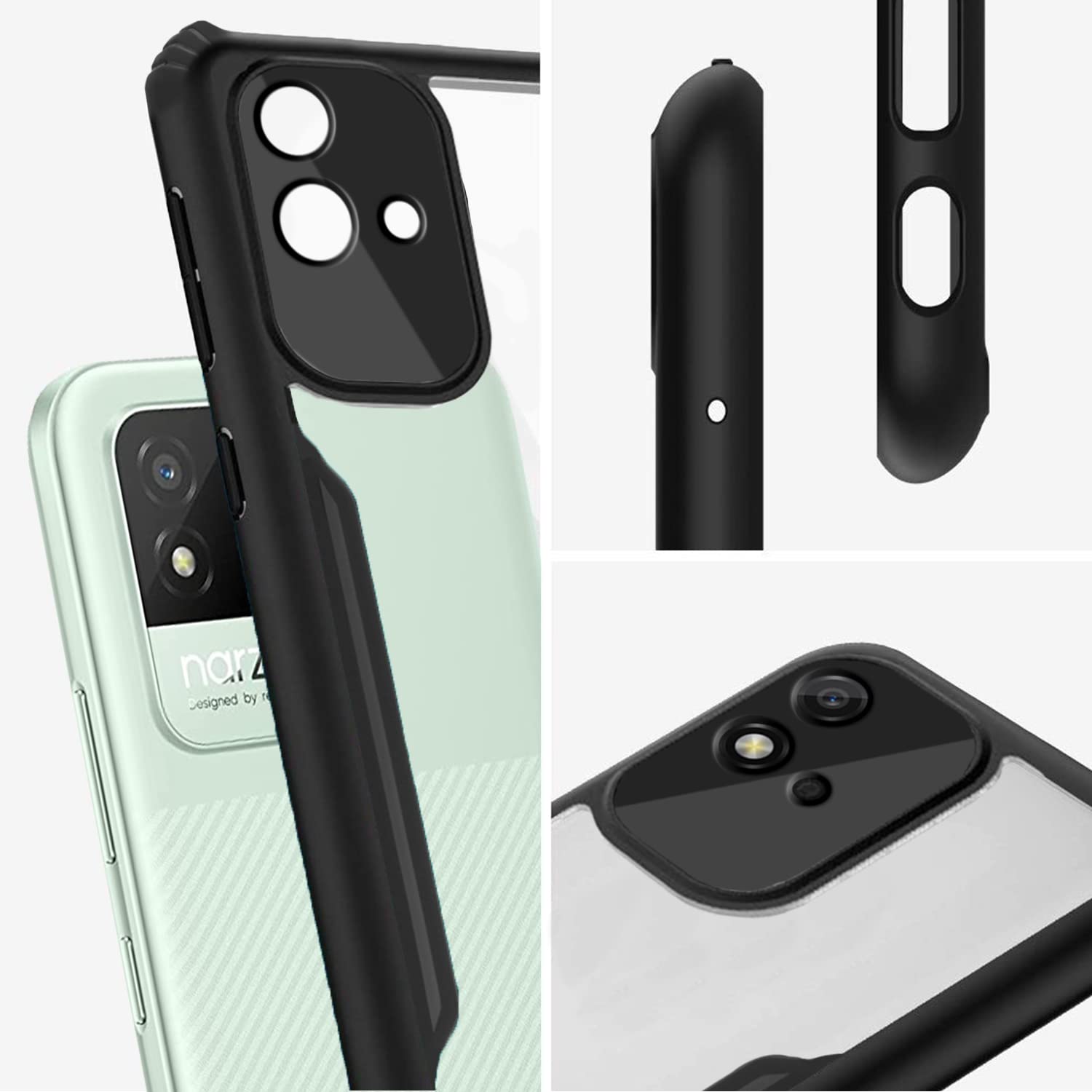 VAKIBO Best Selling Black and Transparent Coloured Made With Soft TPU and Acrylic Back Cover Case With 4 Corner and Camera Protection Suitable for Realme Narzo 50i